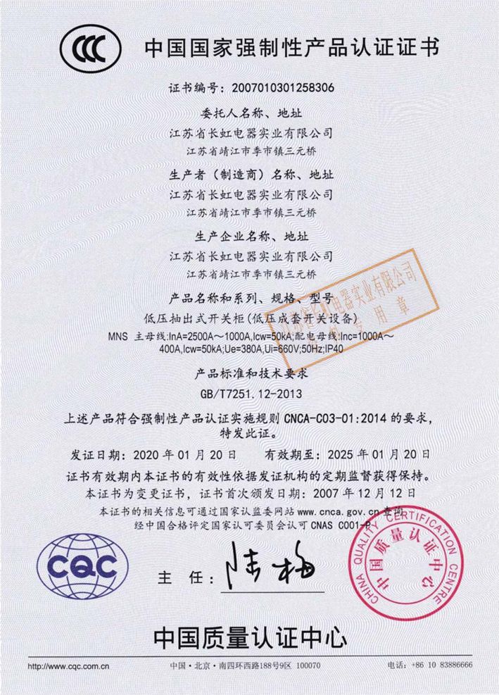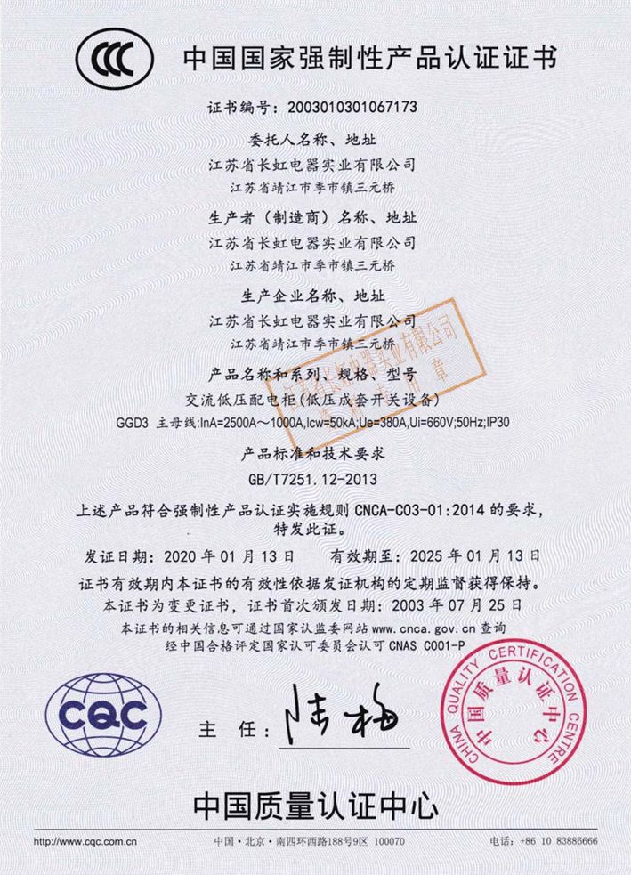 產品均已通過了由國家權威機構進行的型式試驗,并于2003年通過了CCC強制性產品認證。